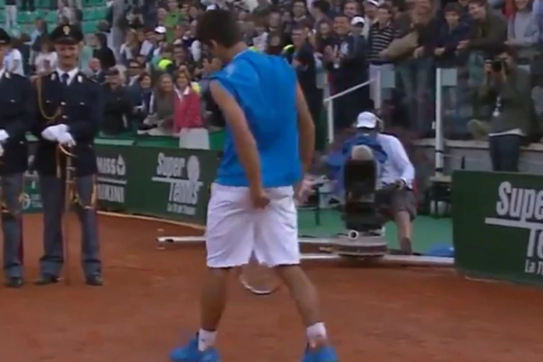 Foto: twitter.com/Tennis TVNekada je Rafa pribegavao brojnim ritualima pre servisa, što je protivnike izluđivalo. Trajalo je to dugo, od provlačenja kose kroz traku do čuvenog povlačenja donjeg veša.