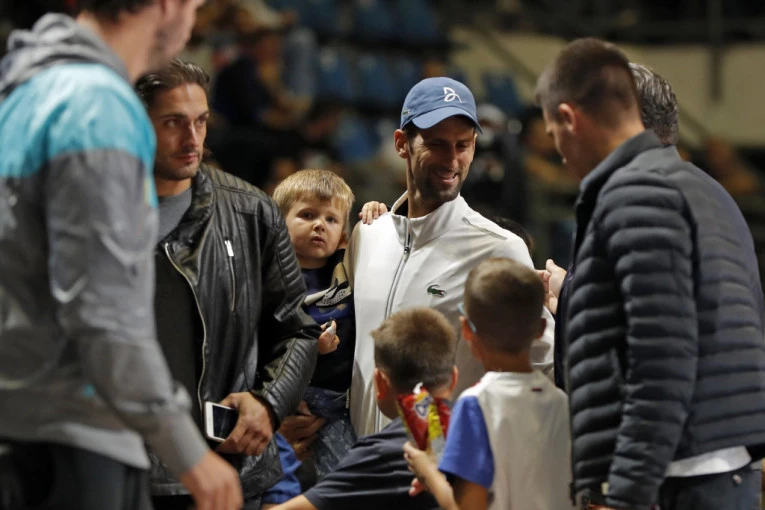 Foto: StarsportMališanima je Novak pokazivao nekoliko vežbi, jedna je podrazumevala i balansiranje loptice na reketu, u čemu se dobro pokazao i sin Stefan.