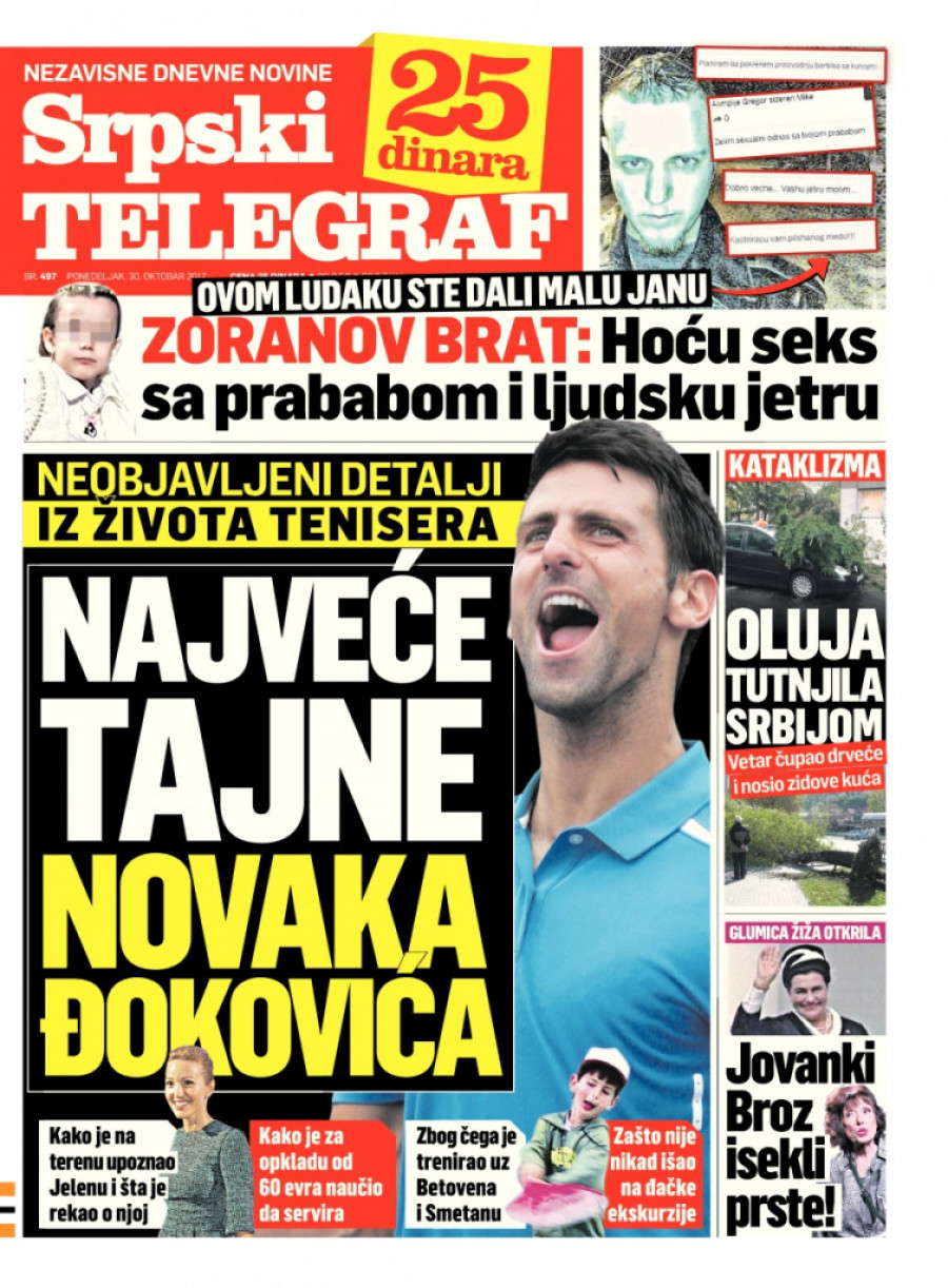 Novak Đoković je naš najbolji teniser u istoriji i osvajač Dejvis kupa sa Srbijom 2010. godine. Dugo je dominirao muškim tenisom i osvajao trofeje na svim grend slemovima, a trenutno se oporavlja od povrede i puni baterije za nove pobede. Nole je otac Stefana i Tare, Jelenin suprug, navijač Crvene zvezde, pleše i svira klavir i saksofon, dok jede bezglutensku hranu... Međutim, o Noletu mnogo toga nije poznato široj javnosti, pogotovo iz juniorskih dana. Srpski telegraf otkriva one zanimljive, manje poznate detalje iz života srpskog asa.