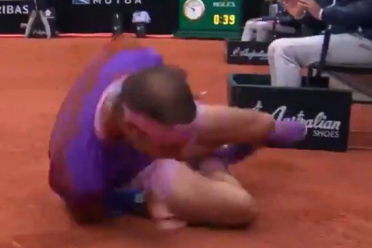 Naime, pri rezultatu 3:3, Rafa je stigao do brejk lopte, ali je potom "zapeo" i prosueo se na Centralnom terenu Otvorenog prvenstva Italije.