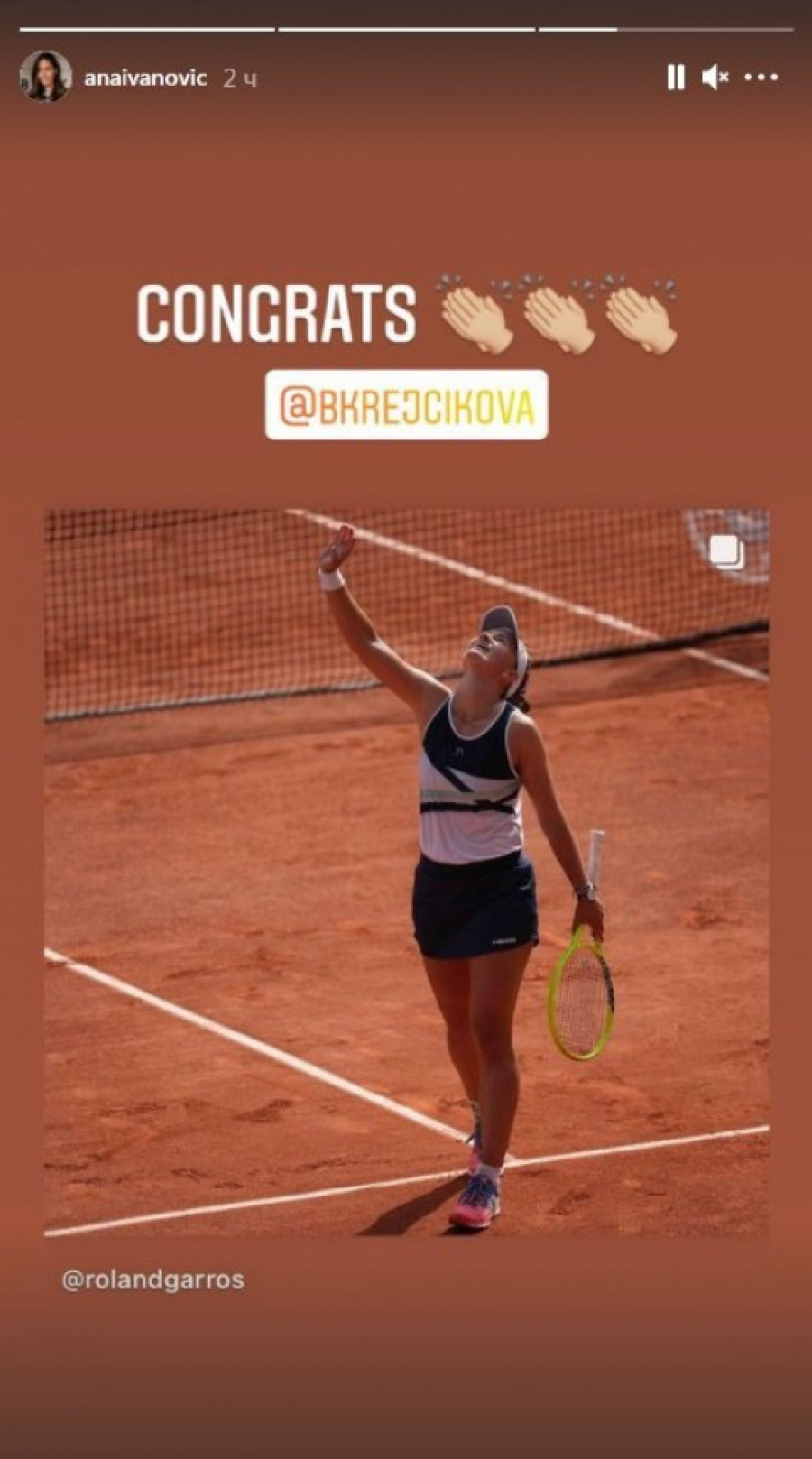 Foto: Tanjug/APAna je putem svog Instagram profila čestitala novoj šampionki Rolan Garosa Barbori Krejičkovi.