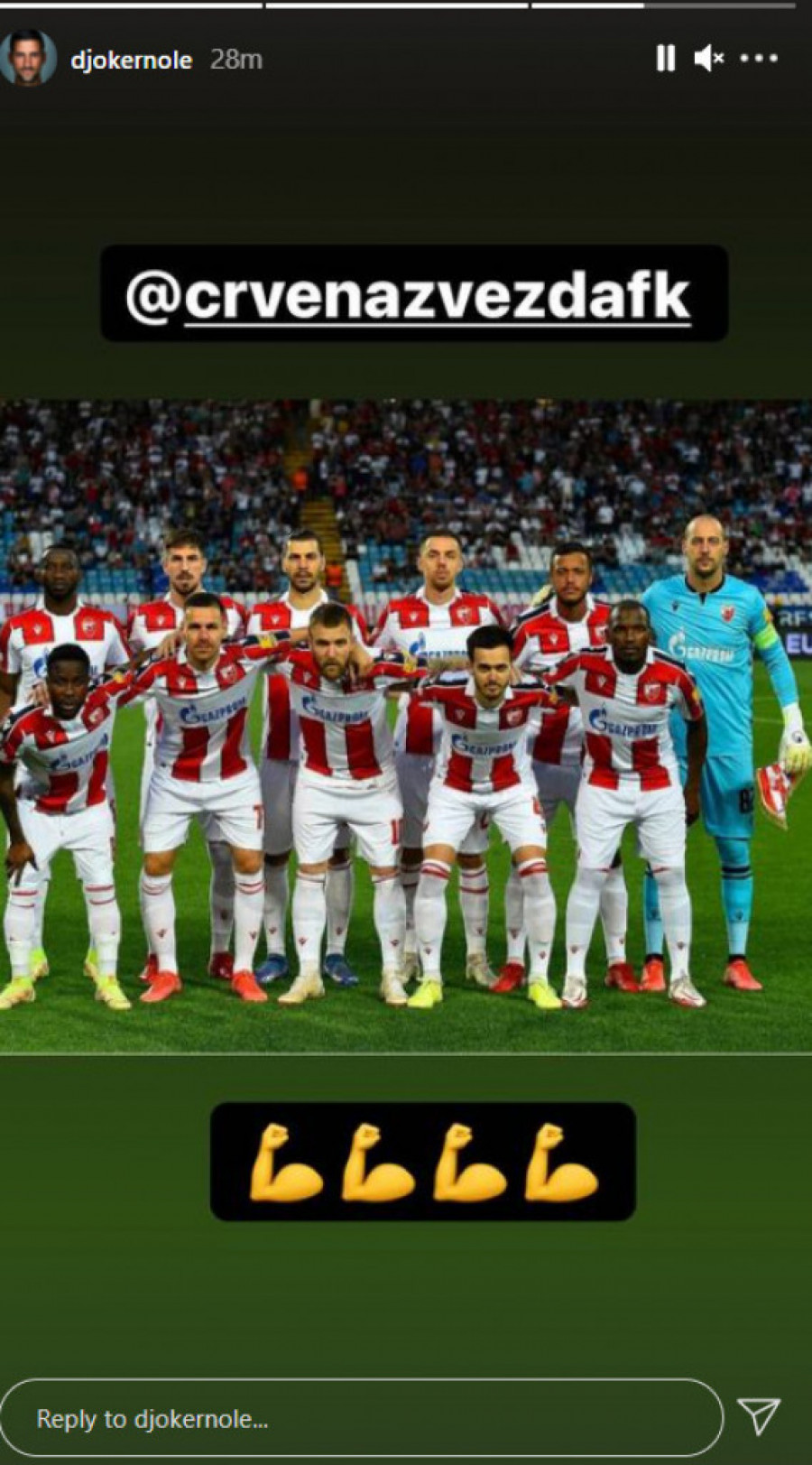 Takođe, u skladu sa navijačkim opredeljenjem, Srbin nije propustio da čestita startnu pobedu Crvene zvezde u okviru grupne faze Lige Evrope. Aktuelni prvak Srbije je savladao Bragu sa 2:1, a Đoković je tom prilikom postavio sledeću fotografiju.