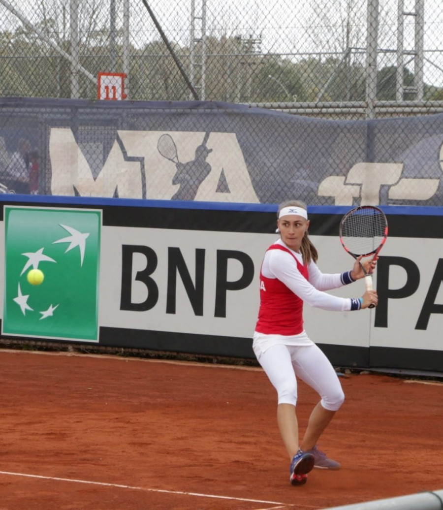 Usledio je susret prvih tabli oba tima u kome je boje Srbije odbranila trofejna Aleksandra Krunić koja iza sebe ima 13 godina staža u repezentaciji, 28 odigranih mečeva, naslov vicešampiona sveta u ovom takmičenju. U susretu sa prvim reketom estonskog tima Elenom Maliginom najbolja teniserka Srbije savladala je protivnicu rezultatom 6:1, 3:6, 6:4 i time donela izjednačenje u ovom susretu. Njhov meč je kod rezultata 5:3 i 15:30 u trećem setu prekinut zbog kiše, na novi izlazak na tere čekalo se više od četiri sata. Pobednika susreta Srbija – Estonija u turskom letovalištu odlučio je dubl meč u kome je srpski tim Krunić, Radanović savladao protivnički par Maligina, Nudi rezultatom 6:3, 6:2.