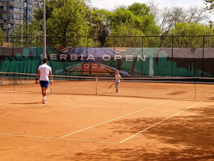 U danu kada Novak odmara od obaveza, prvi reket sveta je stigao na Dorćolu gde ga očekuje druženje sa fanovima, tome je prethodio i tenis meč zajedno sa svojim sinom.