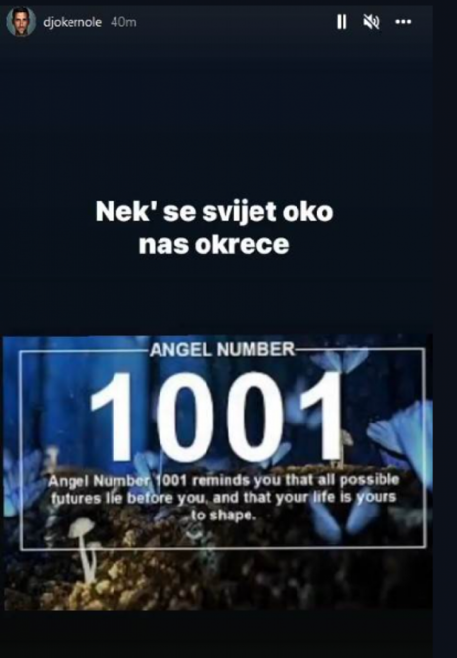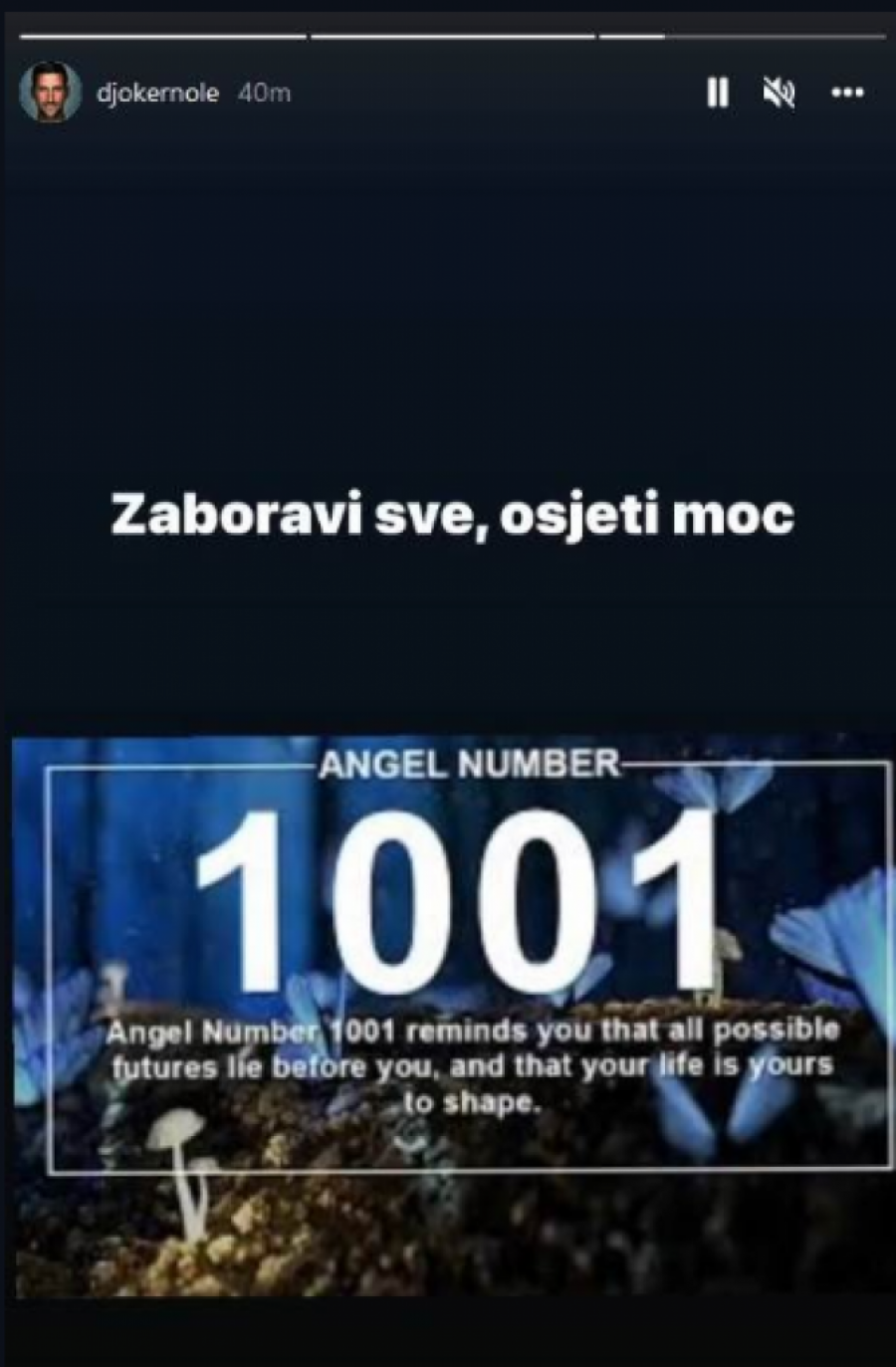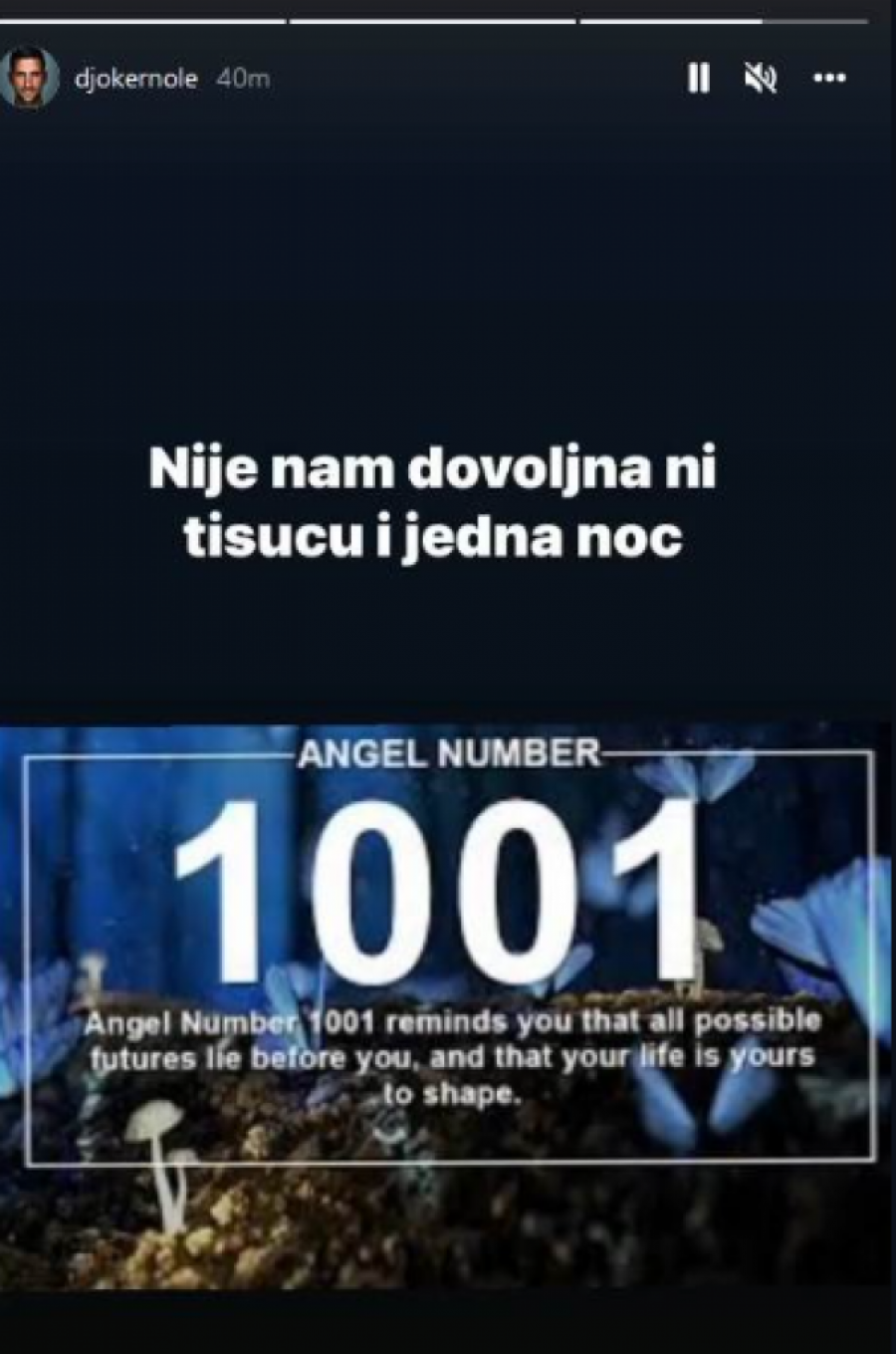 Naime, Novak je podelio "stori" uz pesmu hrvatske grupe Kolonija - "Nije nam dovoljna ni 1.001 noć". To nije sve, videli smo i grafiku, a u pitanju je poruka u kojoj se govori o "anđeoskom broju 1.001", a mnogi nisu znali na koji način to da protumače.
