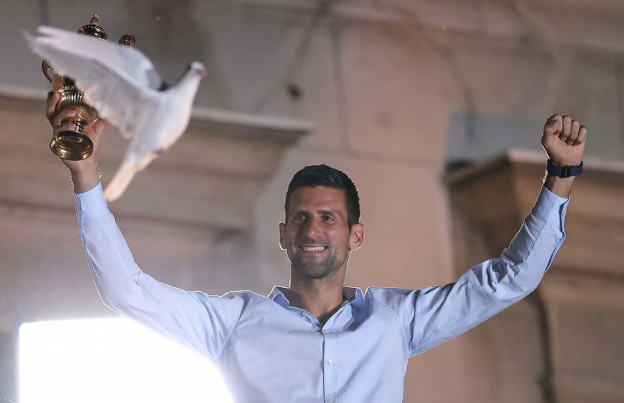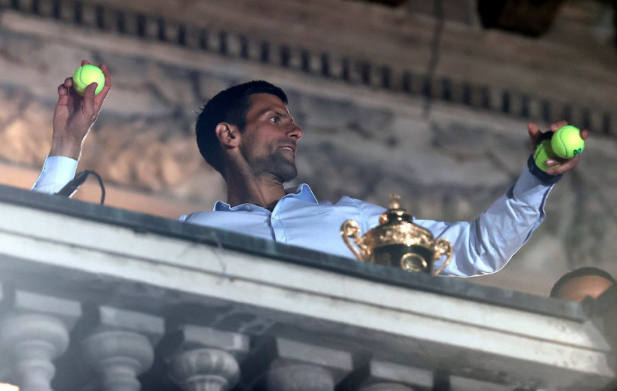 Uz zvuke srpske himne "Bože pravde" Novak Đoković je stupio na kultnu terasu gradske Skupštine koja je toliko puta u prethodne gotovo tri decenije bila stecište najvećih srpskih sportskih ostvarenja. Bilo je potpuno jasno, da i pored činjenice da se na ovom mestu ne nalazi prvi put, Novak ima veliku tremu kakvu nikada nije prikazao na teniskom terenu. Pod vidnim naletima emocija pozdravio je sve okupljene sugrađane, zahvalio im se na veličanstvenom dočeku, ali i izrekao ono što smo svi i očekivali - da ćemo se uskoro ponovo, na istom mestu i istim povodom svi okupiti.