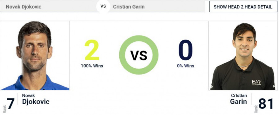 Prvi protivnik Novaka Đokovića na ovom turniru biće čileanski teniser Kristijan Garin, a prema unapred utvrđenom planu Đoković bi dvoboj sa trenutno 81. igračem sveta trebao da započne u 14 časova po srpskom vremenu.