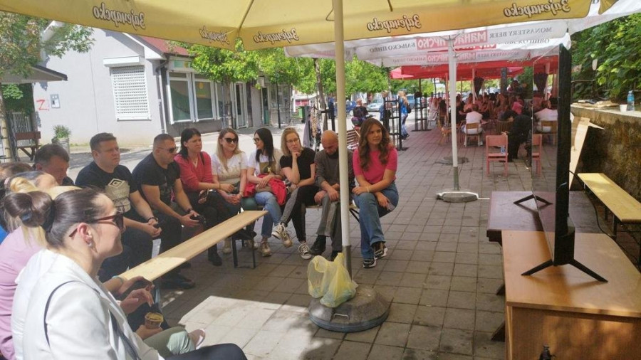 Građani okupljeni u centru Zvečana zajedno navijaju za Novaka, koji je počasni građanin te opštine.