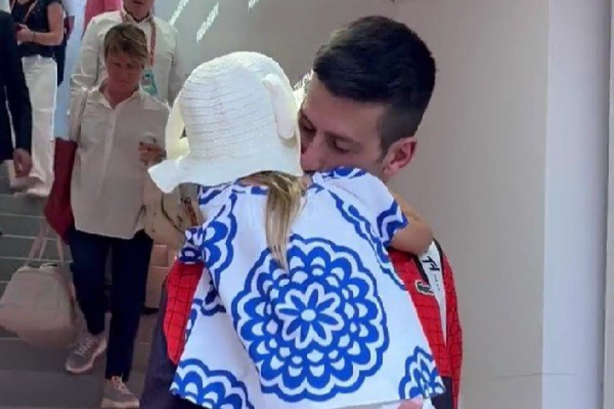 Mlađa ćerkica je oduševljeno čekala da se tata pojavi, pa je poletela ocu u zagrljaj, presrećni Nole je podigao Taru i nekoliko puta je izljubio.