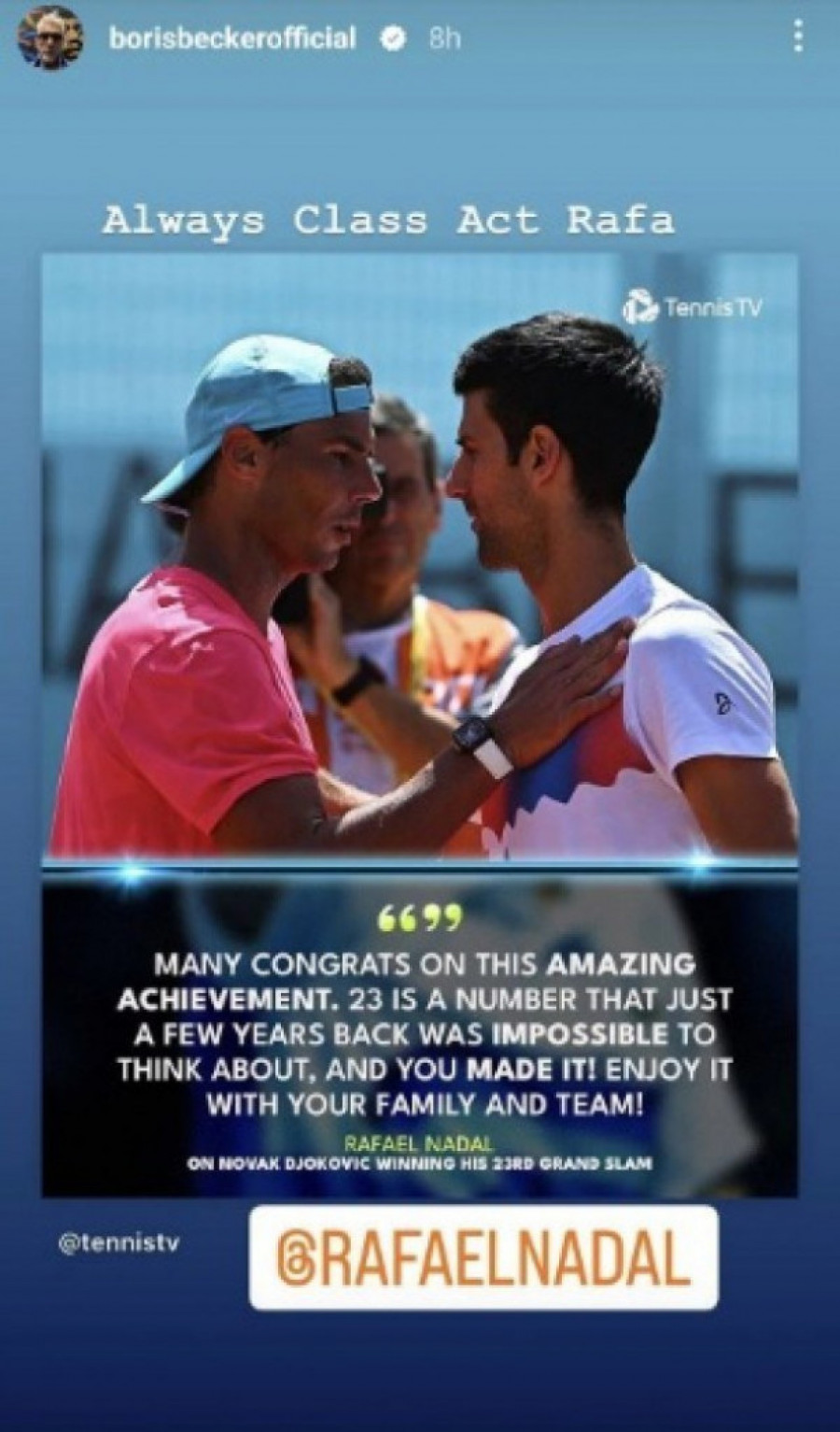 - Uvek otmen čin od strane Rafe - napisao je Boris Beker.
