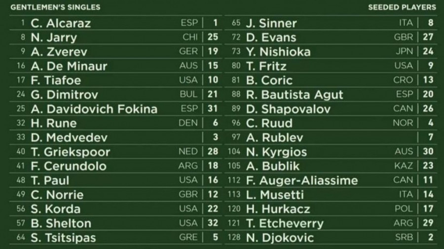 Karlos Alkaraz kao prvi nosilac u prvom kolu igra protiv Francuza Žeremija Šardija, a Alkaraz bi već u četvrtom kolu mogao da se sastane sa Aleksanderom Zverevim.