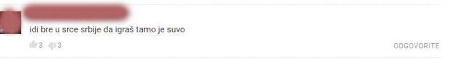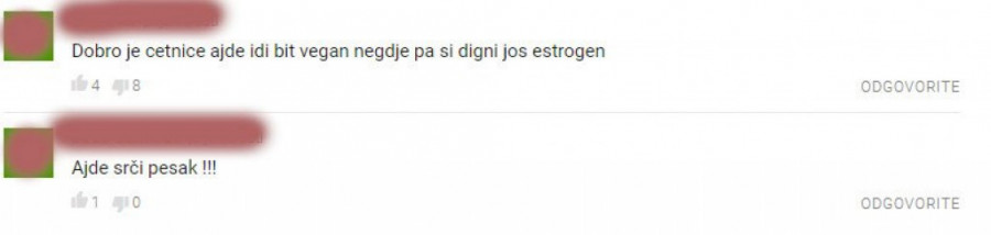 "Idi bre u srce Srbije da igraš tamo je suvo", "Dobro je četnice ajde idi budi vegan negde pa podigni još estrogena", "Ajde srči pesak!", samo su neki od komentara.
