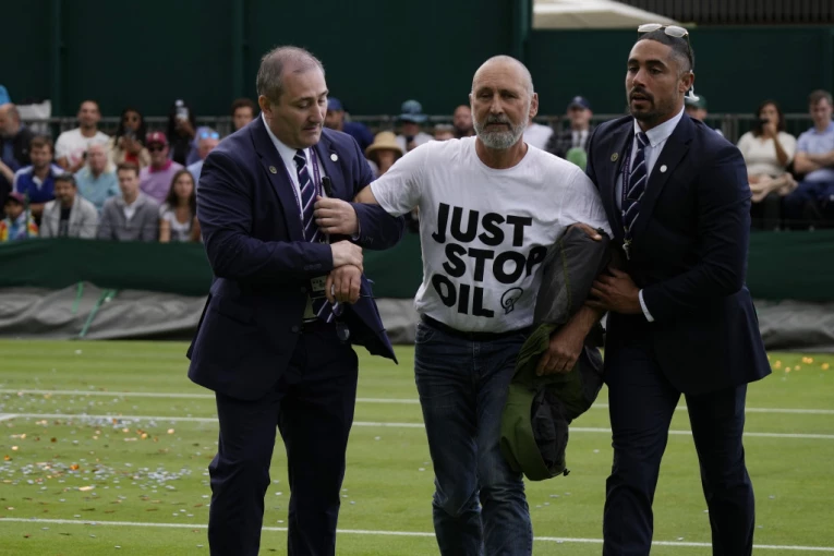 - Zbog incidenta na terenu 18 dvojica pojedinaca su uhapšena pod sumnjom da su neovlašćeno upali na posed i da su izvršili krivično delo. Te osobe su sada uklonjene sa kompleksa Vimbldona. Igra na terenu je privremeno stopirana, a meč je nastavljen nakon prekida izazvanog kišom - stoji u saopštenju Vimbdlona.