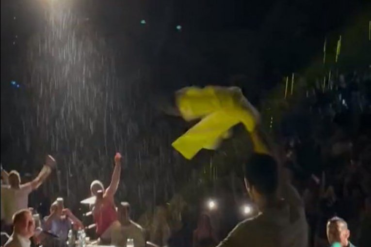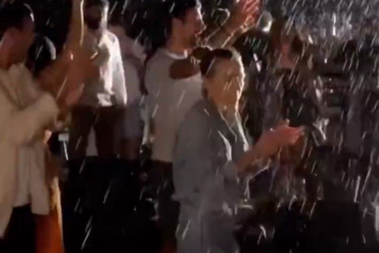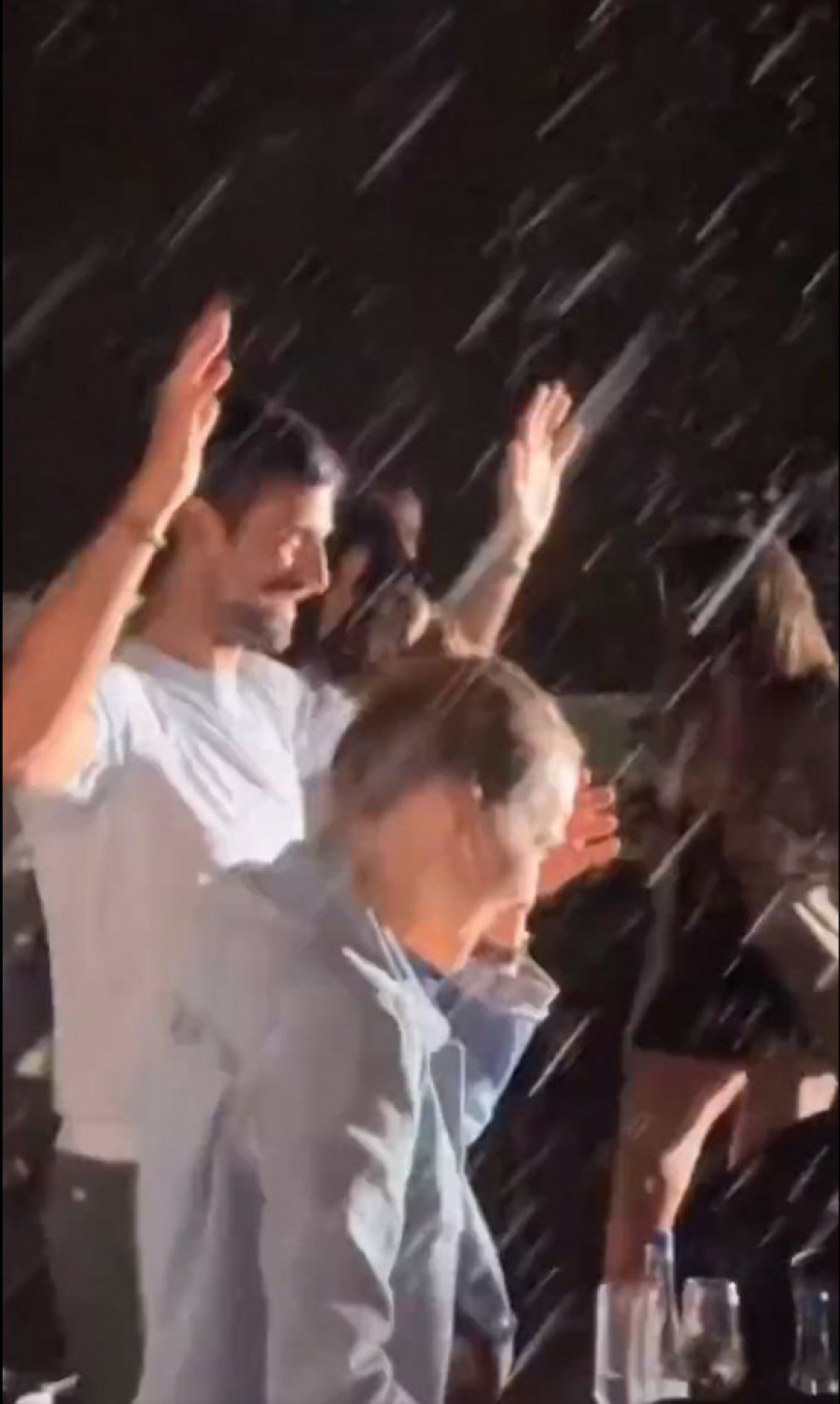 Nole i Jeca su zagrljeni plesali na podijumu uprkos jakom nevremenu, što je izazvalo oduševljenje prisutnih. Potom je Novak ispoštovao brojne fanove i mokar do kože pozirao s osmehom.