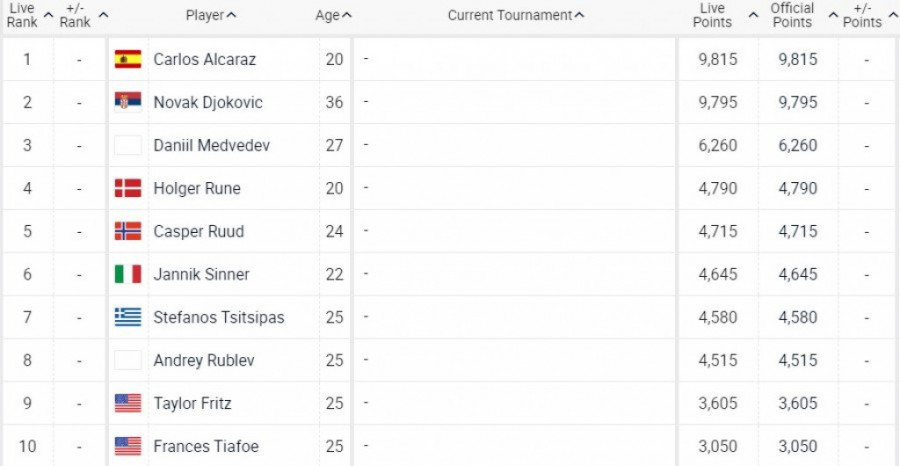 To će se, po svemu sudeći, desiti već na US Openu, gde "Karlitos" brani titulu i ukoliko je osvoji ostaće na ovom bodovnom saldu, dok Novaku plasman u drugo ili treće kolo automatski donosi prvo mesto, jer ne brani ništa, budući da prethodne dve godine nije ni učestvovao!
