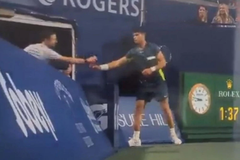 Opet se po društvenim mrežama diskutovalo da li je uradio sve po pravilima, da li je koristio nešto nedozvoljeno... Međutim, promakla im je gotovo identična scena na drugoj strani terena kada je Karlos Alkaraz, takođe u toku meča, od svojih trenera dobio piće u flaši. A, šta ćemo sad?!