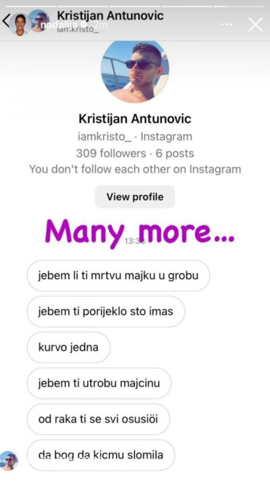 Potom je otkrila samo deo odvratnih poruka koje je primila.
