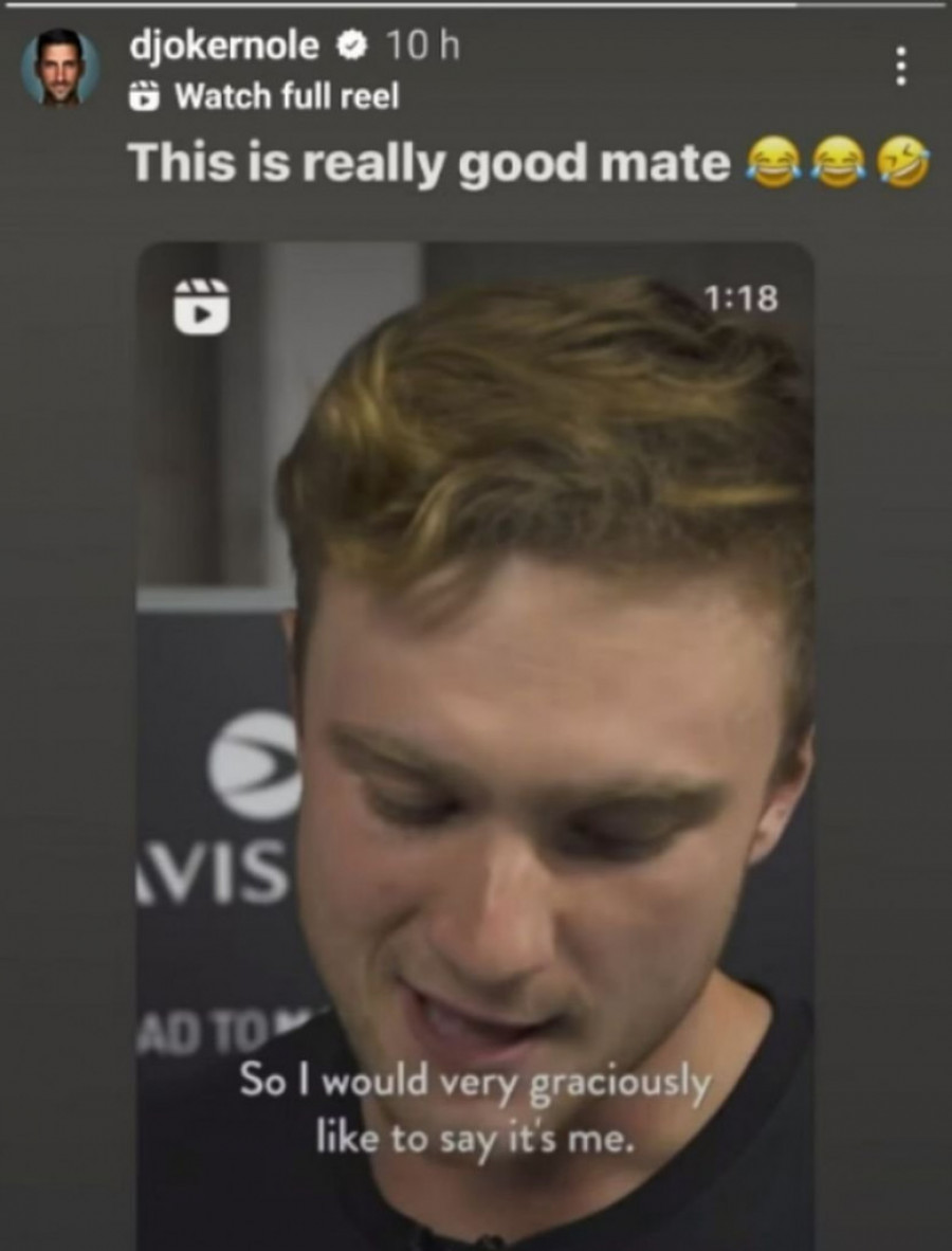 Nije se dugo čekala Noletova reakcija, pošto je Đoković ekspresno odgovorio Britancu u pet reči. Usledila je zahvalnost za perfektnu glumu: