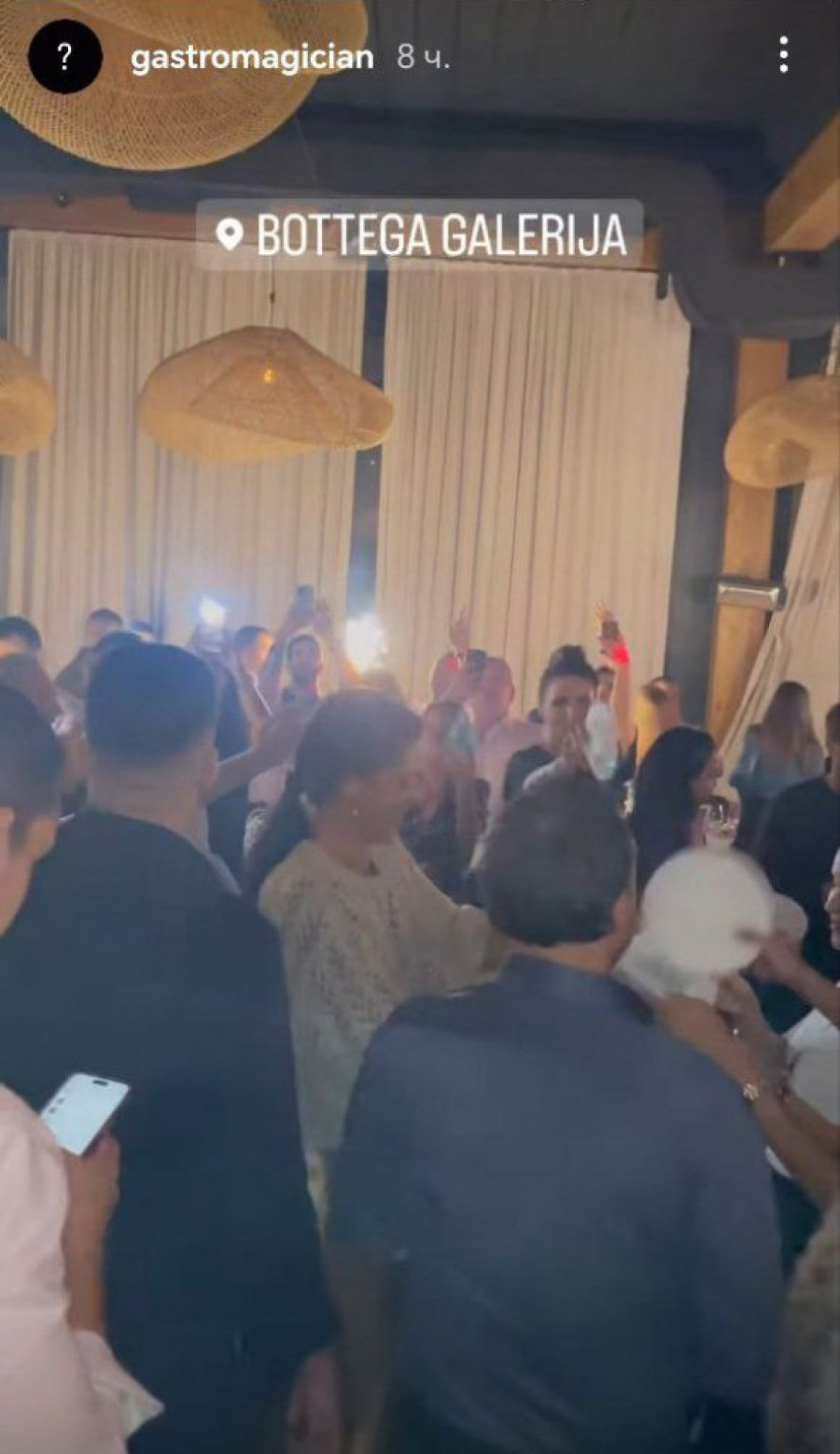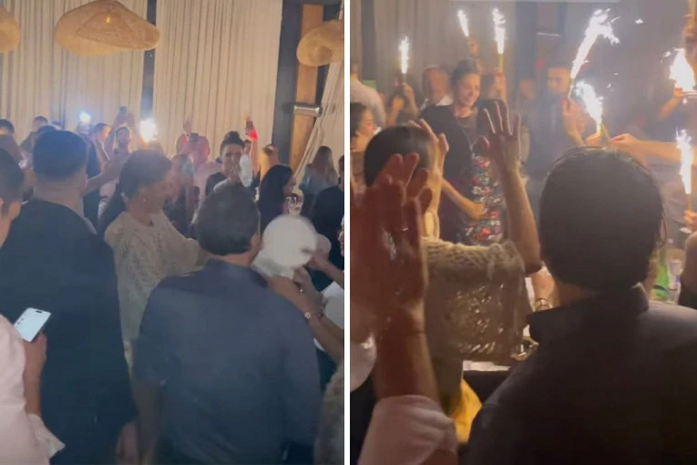 Tokom večeri, Ana je iznenadila prisutne tako što je počela da lomi tanjire, što je tradicionalni grčki običaj na ovakvim proslavama. Njihovoj veselju su se pridružili i Anin brat Miloš Ivanović i njegova supruga Dragana Džajić.