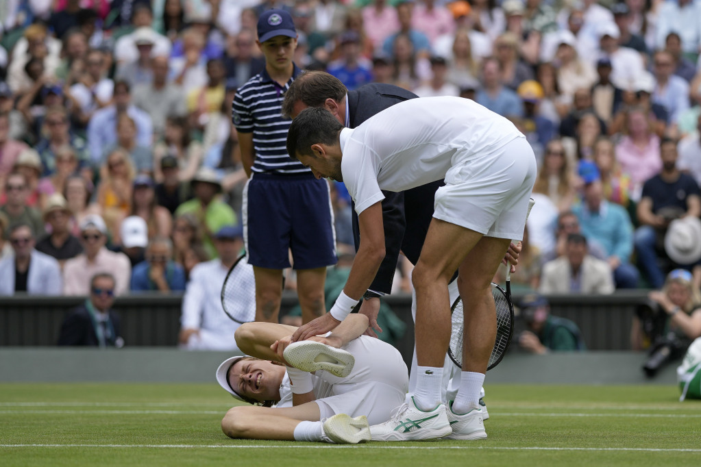 Naime, pri vođstvu Đokovića od 2:1 u gemovima, a na servis Italijana kod rezultata 40:40, oba tenisera su prestala da gledaju jedan prema drugome i usmerili pažnju na dešavanja na tribini iza Noletovih leđa. Jer, tamo je došlo do tuče navijača.