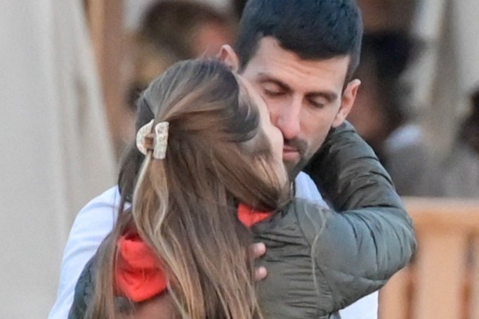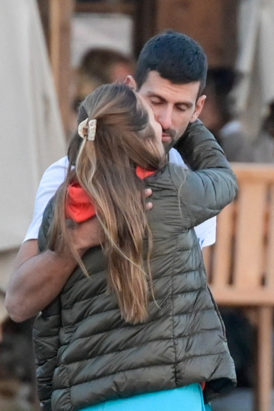 U jednom tretku Novaku je očigledno bilo vruće pa je čak skinuo majicu i ostao go iznad pojasa, pa su se jasno videli mišići, ali i krst koji nosi oko vrata. Bilo je tu i vremena za razmenu nežnosti. Tako je Đoković u više navrata grlio Stefana, a onda i suprugu. Pali su i sočni poljupci, kao i zagrljaji.