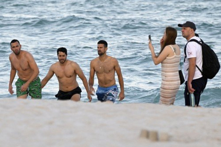 Novak je uslikan kako uživa na plaži u društvu prijatelja, a široki osmeh na njegovom licu govori da mu lepo vreme i aktivnosti u vodi izuzetno prijaju.