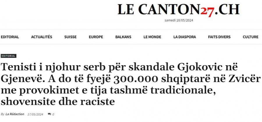Međutim, odluka Novaka Đokovića da nastupi u Švajcarskoj izazvala je kontroverze, posebno nakon skandaloznog teksta objavljenog u tamošnjem mediju na albanskom jeziku. Naslov teksta "Poznati srpski teniser Đokovića sprema skandal u Ženevi. Hoće li svojim već tradicionalnim, šovinističkim i rasističkim provokacijama uvrediti 300.000 Albanaca u Švajcarskoj?" jasno pokazuje kontroverzni ton kojim se autor obraća Novaku Đokoviću.