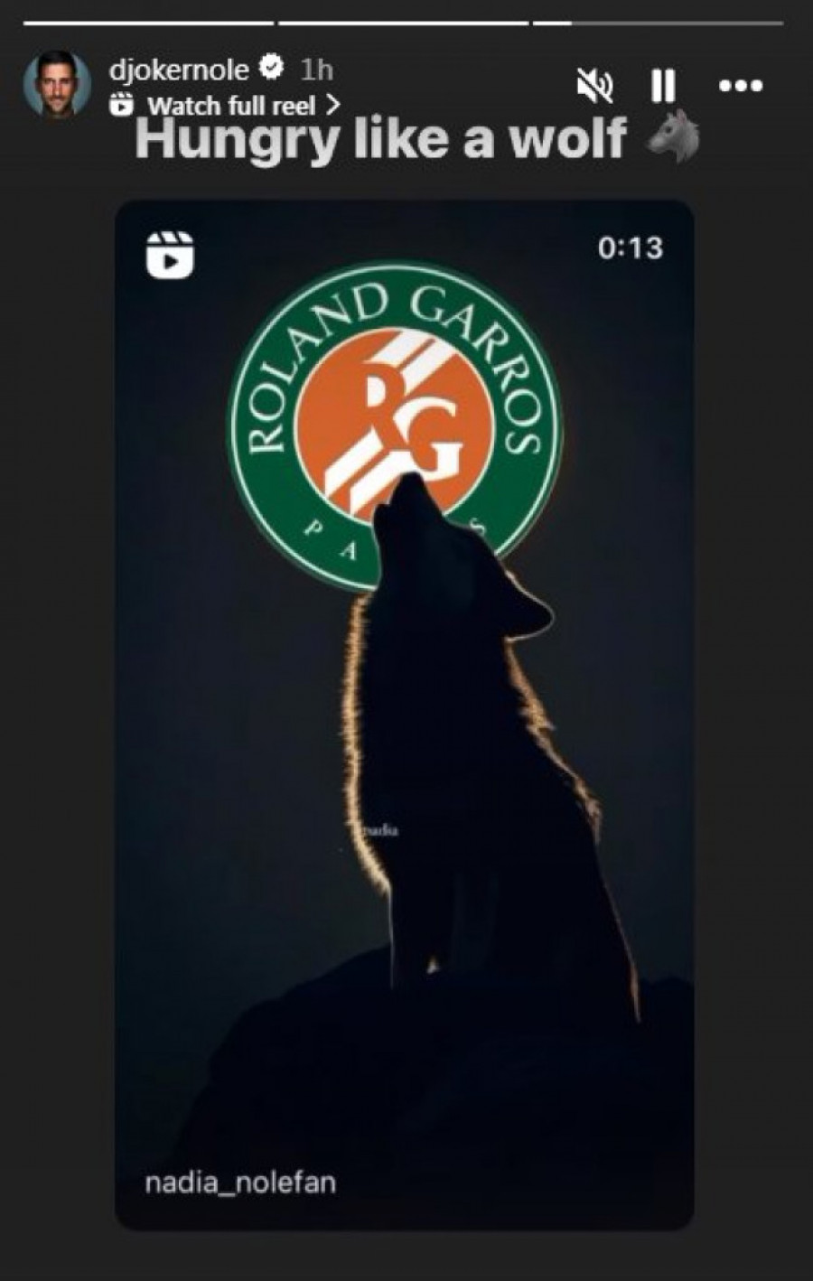 Novak je podelio svoje emocije na društvenim mrežama, objavivši fotografiju vuka koji zavija i logo Rolan Garosa, uz snažnu poruku: