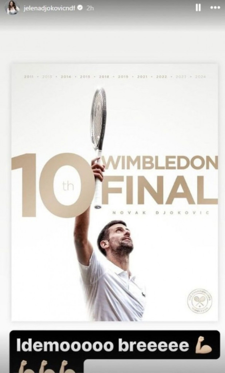 Iako meč nije ispratila sa tribina, Jelena je poslala poruku podrške uz Novakovu fotografiju, napisavši: "Idemo breee". Ova podrška nije izostala ni u trenucima kada je Novak zabeležio još jednu impresivnu pobedu na omiljenom turniru.