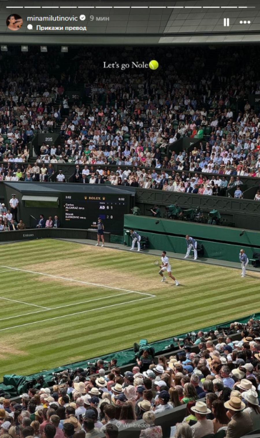 I dok se Novak muči protiv Alkaraza u finalu, pojavljuju se fotografije sve više zvezda koje tome svedoče na Centralnom terenu Vimbldona. Pored velikog broja navijača, na tribinama Centralnog terena su se našle i poznate ličnosti poput glumaca Džulije Roberts, Toma Kruza i Benedikta Kumberbača. Osim famoznih glumaca, tu je i košarkaš Crvene zvezde sa svojom lepšom polovinom.