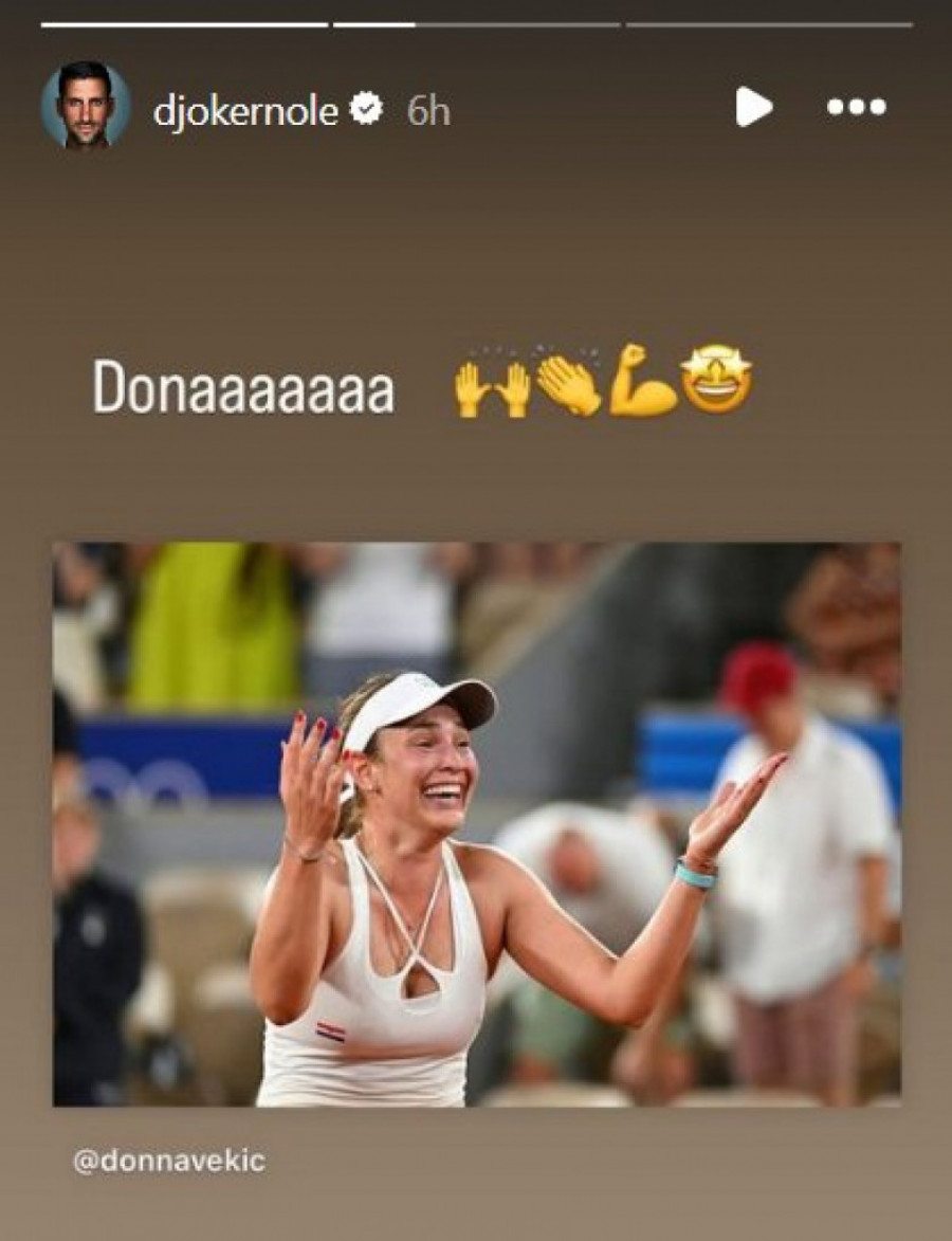 Sportska javnost nije dugo čekala na naredno obraćanje Đokovića, koje je usledilo oko dva sata nakon ponoći. Tada je srpski teniser putem zvaničnog Instagram naloga javno čestitao Hrvatici Doni Vekić i Kineskinji Ćinven Dženg na plasmanu u finale Olimpijskih igara.