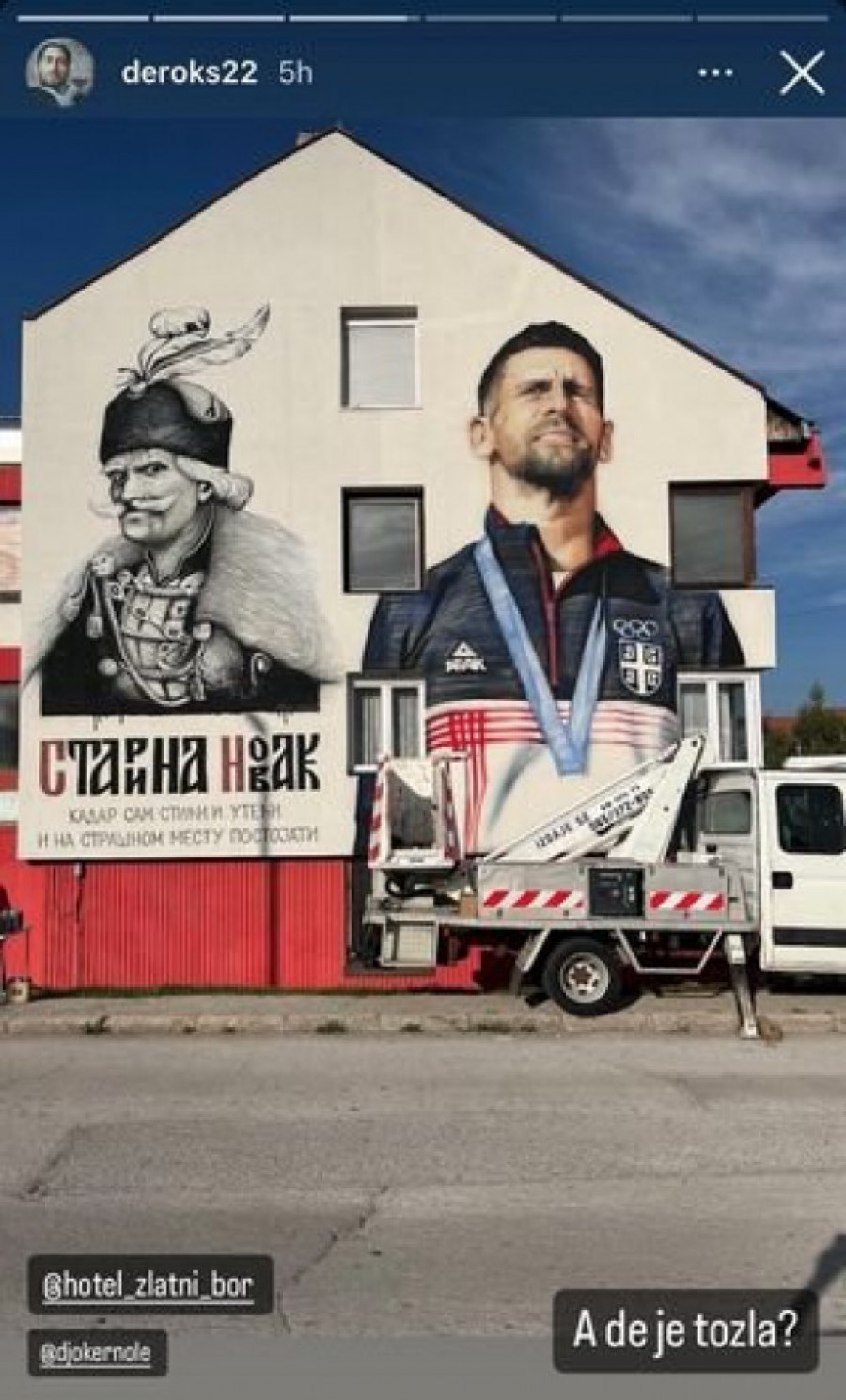 Umetnik Milan Milosavljević napravio je fenomenalan mural Novaka Đokovića, možda i najlepši koji je ikada urađen o najvećem teniseru svih vremena. Mural prikazuje trenutak kada Novak sluša himnu sa pogledom na srpsku trobojku, sa zlatnom medaljom oko vrata. Ova scena je učinila čitavu Srbiju ponosnom i ostaće ovekovečena na zidovima jedne fasade na Sokocu u Republici Srpskoj.