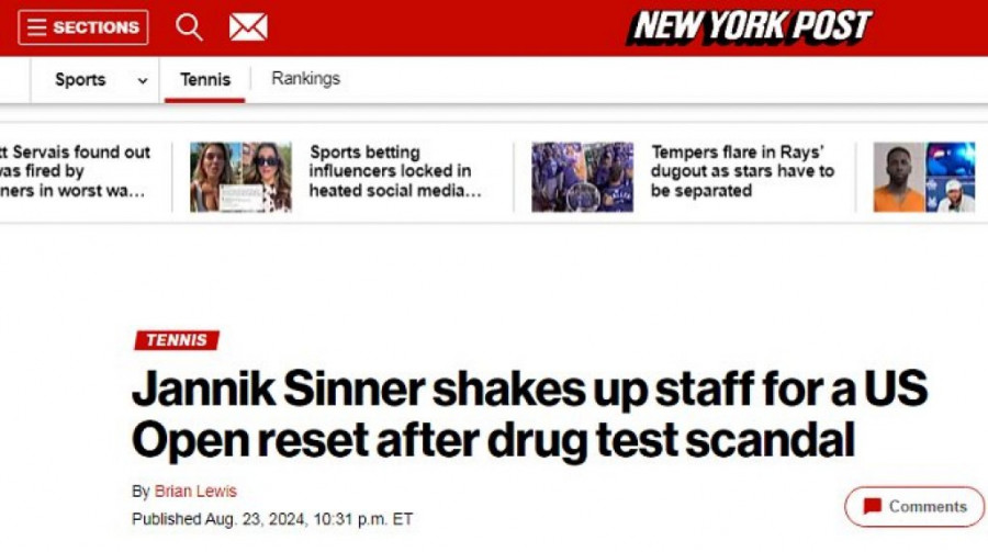 Da podsetimo, Janik Siner je testiran pozitivno na niske nivoe klostebola, zabranjenog anaboličkog steroida, 10. i 18. marta. Međutim, Međunarodna teniseka agencija (ITIA) je saopštila da je nezavisni panel održao saslušanje 15. avgusta i utvrdio da su tragovi supstance "rezultat kontaminacije od člana tima podrške, koji je nanosio sprej sa klostebolom na sopstvenu kožu radi tretiranja male rane". Ferara je kupio sprej, a Naldi ga je koristio na sebi pre nego što je masirao Sinera, time ga kontaminirajući.