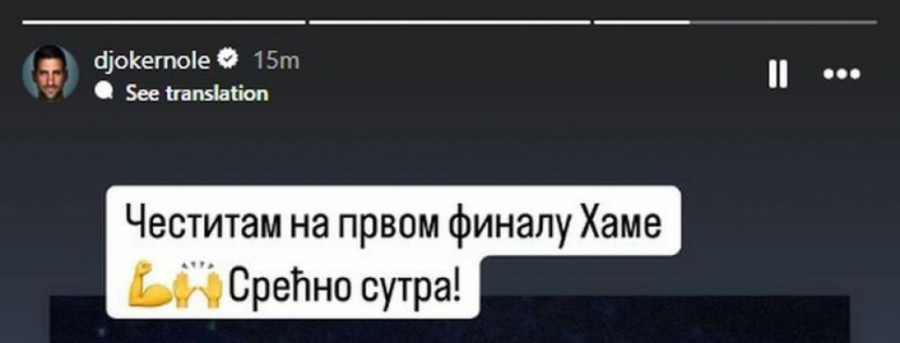 - Čestitam na prvom finalu Hame! Srećno sutra! - napisao je Đoković uz fotografiju Međedovića.