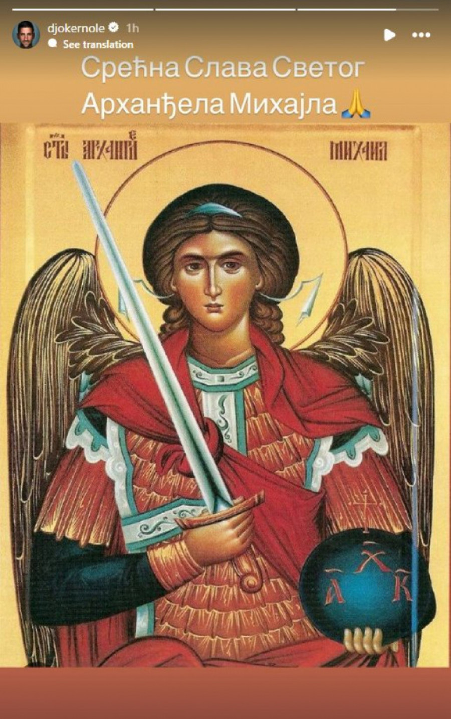 Najbolji srpski teniser, Novak Đoković, obradovao je svoje pratioce na Instagramu čestitkom povodom pravoslavnog praznika Aranđelovdana. Ovaj dan je jedan od najznačajnijih praznika koji se obeležava u Srbiji, zajedno sa Svetim Nikolom i Svetim Đorđem. Đoković je uputio vernicima svoje najlepše želje putem kratke poruke na društvenoj mreži, ističući važnost ovog velikog praznika.
