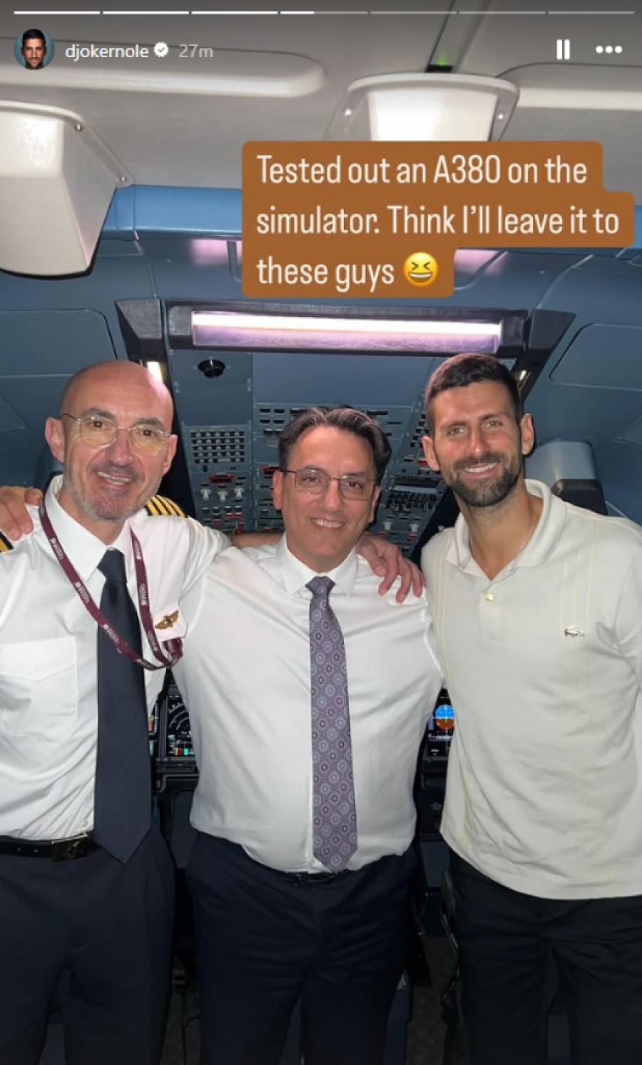 - Probao sam da testiram let na A380 u simulatoru. Mislim da ću prepustiti posao ovim momcima - napisao je Nole