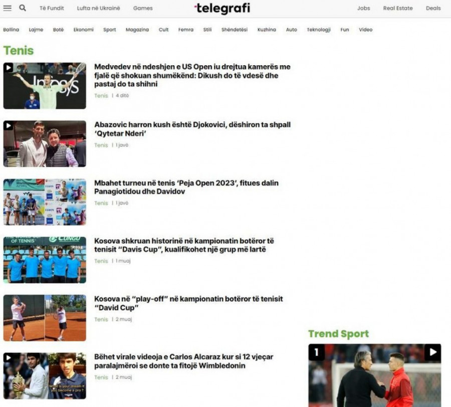 Naročito se to odnosi na Telegrafi, koji ima i kategoriju posebno za tenis, sa US opena ima vest o Đokoviću, i to zbog reči Dritana Abazovića, koji je ponudio Novaku status počasnog građanina Crne Gore, a naslov je "Azbazović zaboravlja ko je Đoković, hoće da ga proglasi počasnim građaninom".