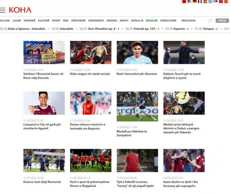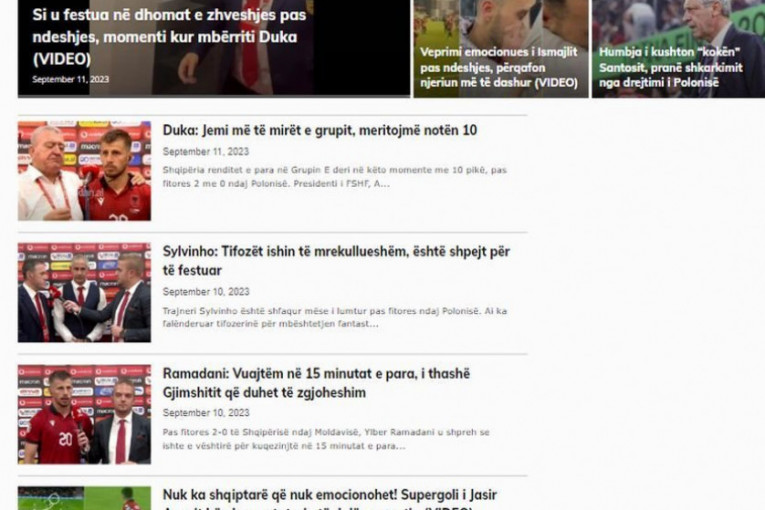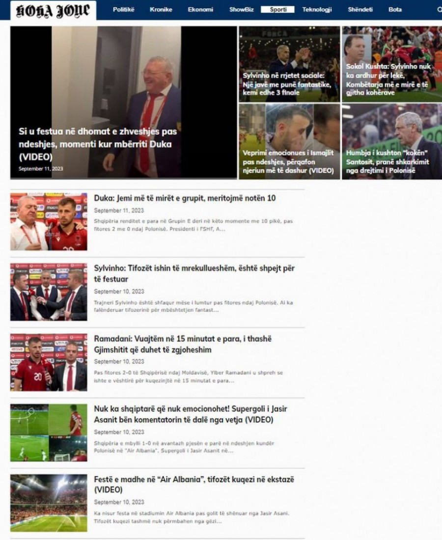 Udarna vest je bila o utakmici Albanija - Poljska, gde je domaćin upisao važan trijumf u kvalifikacijama za Evropsko prvenstvo i napravio veliki korak ka njemu, dok u sportskim kategorijama dominiraju vesti upravo o meču iz Tirane.