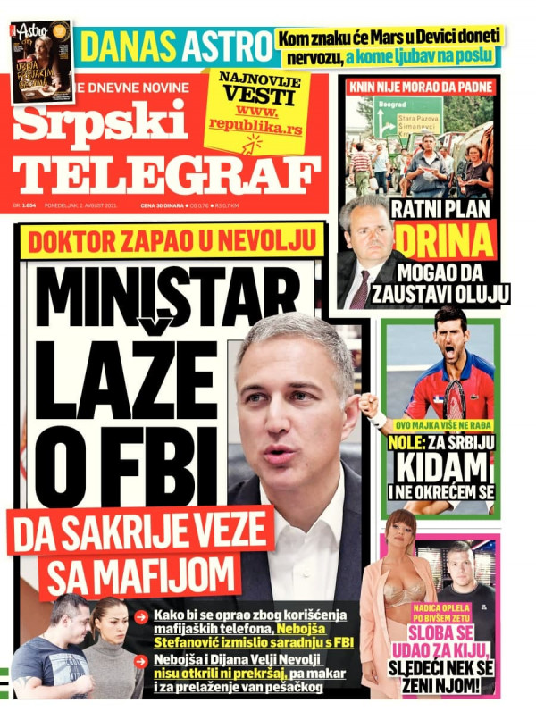 Naslovna strana Srpskog telegrafa za 02.08.2021.