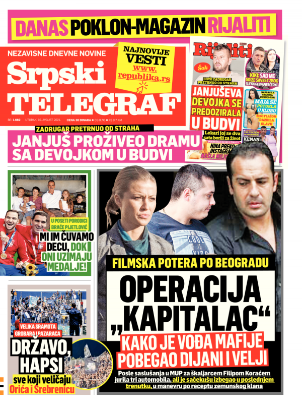 Naslovna strana Srpskog telegrafa za 10.08.2021.