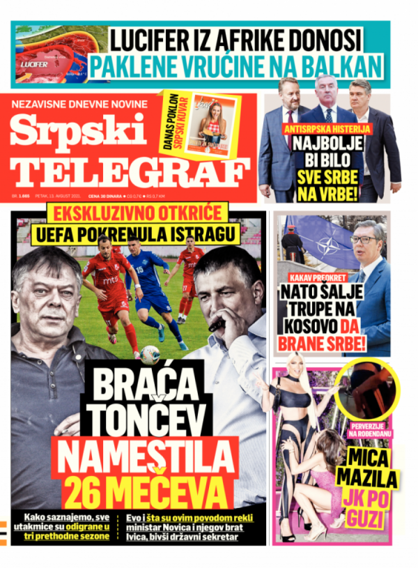Naslovna strana Srpskog telegrafa za 13.08.2021.