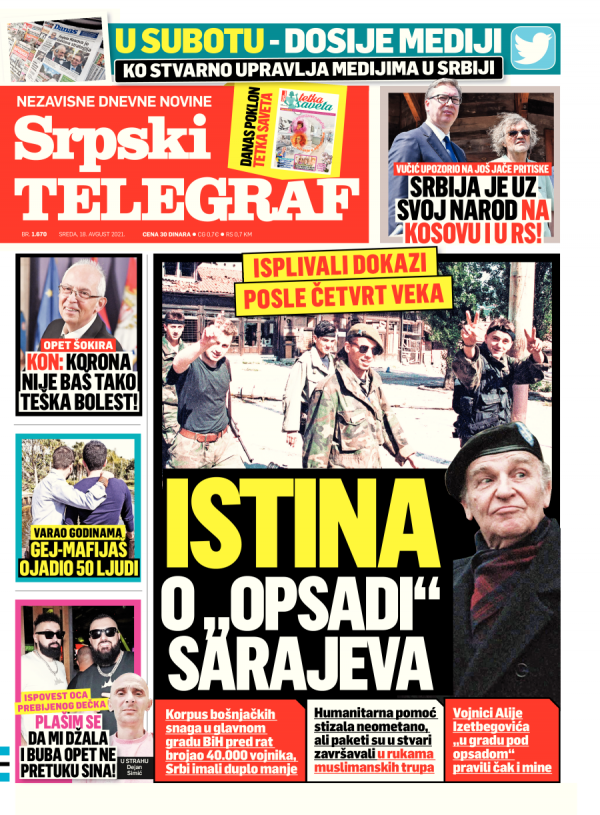 Naslovna strana Srpskog telegrafa za 18.08.2021.