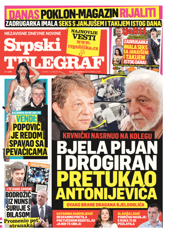 Naslovna strana Srpskog telegrafa za 24.08.2021.