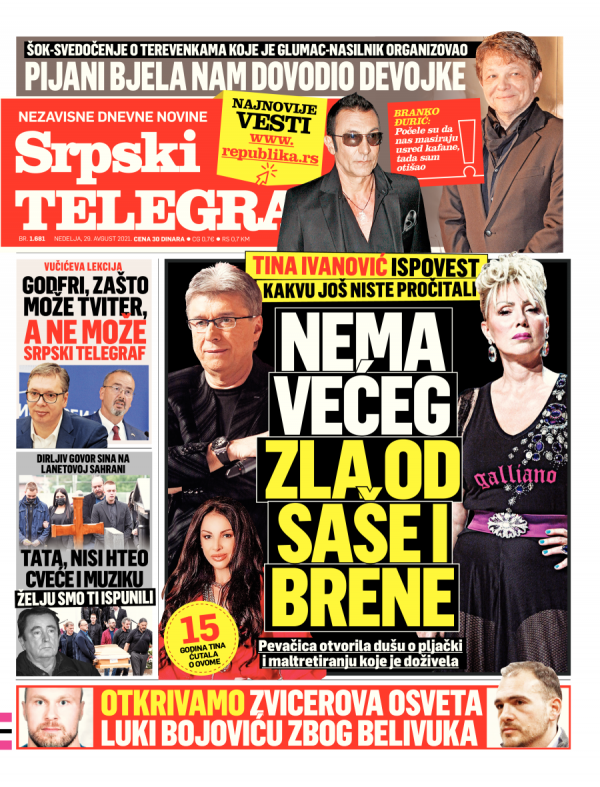 Naslovna strana Srpskog telegrafa za 29.08.2021.