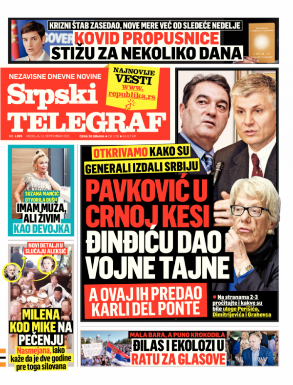 Naslovna strana Srpskog telegrafa za 12.09.2021.