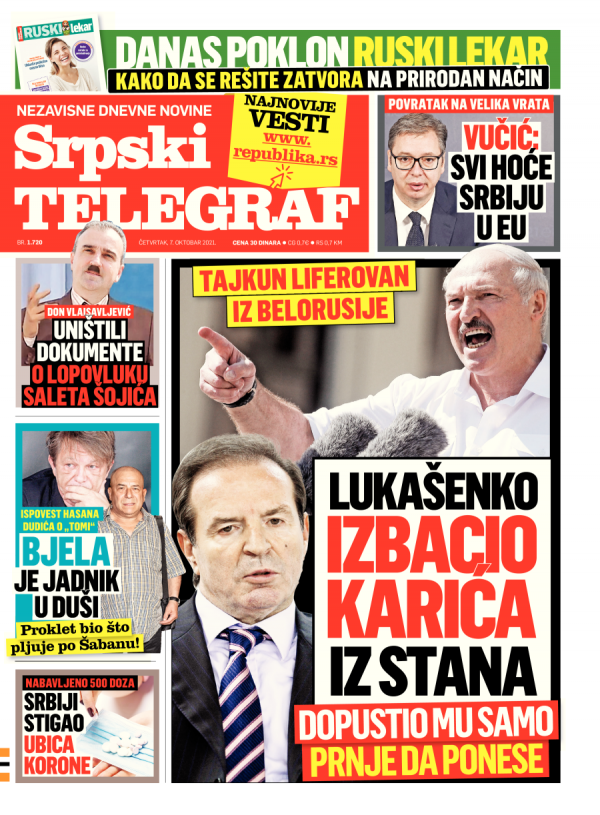 Naslovna strana Srpskog telegrafa za 07.10.2021.