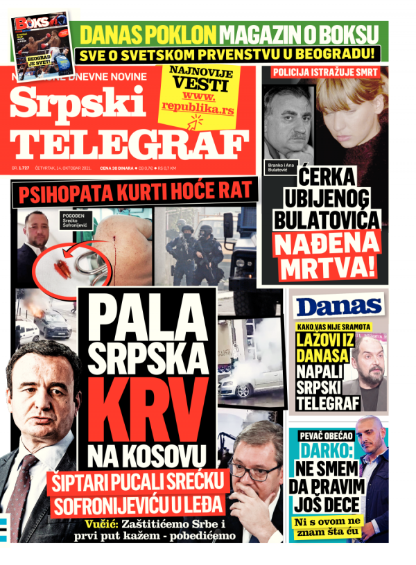 Naslovna strana Srpskog telegrafa za 14.10.2021.