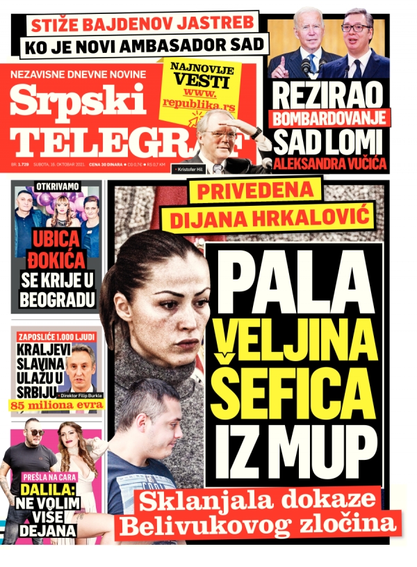 Naslovna strana Srpskog telegrafa za 16.10.2021.
