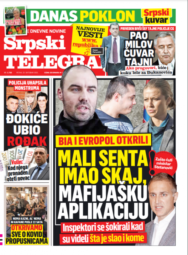 Naslovna strana Srpskog telegrafa za 22.10.2021.