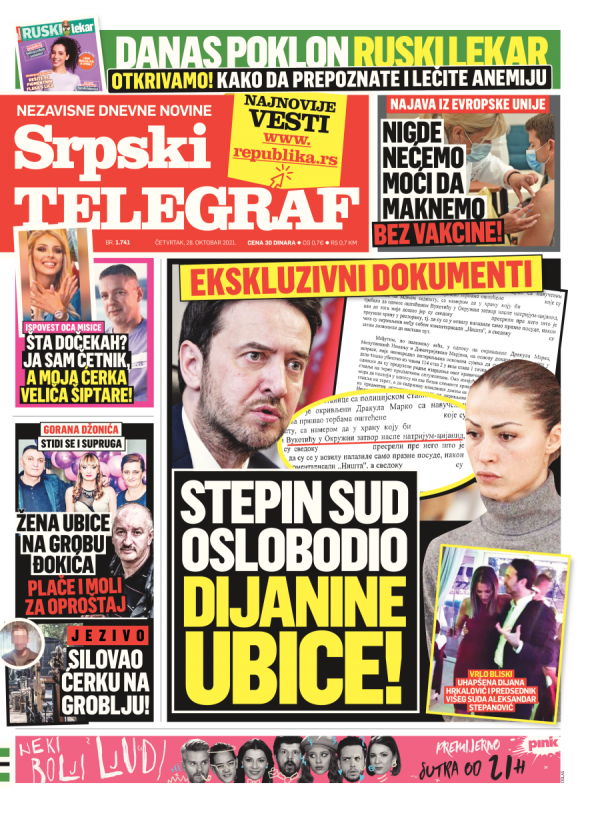 Naslovna strana Srpskog telegrafa za 27.10.2021.